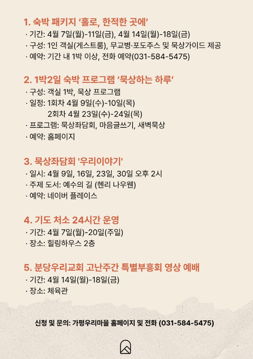 4월, 가평우리마을에서 예수님의 고난과 부활의 행적을 깊이 묵상해보세요.