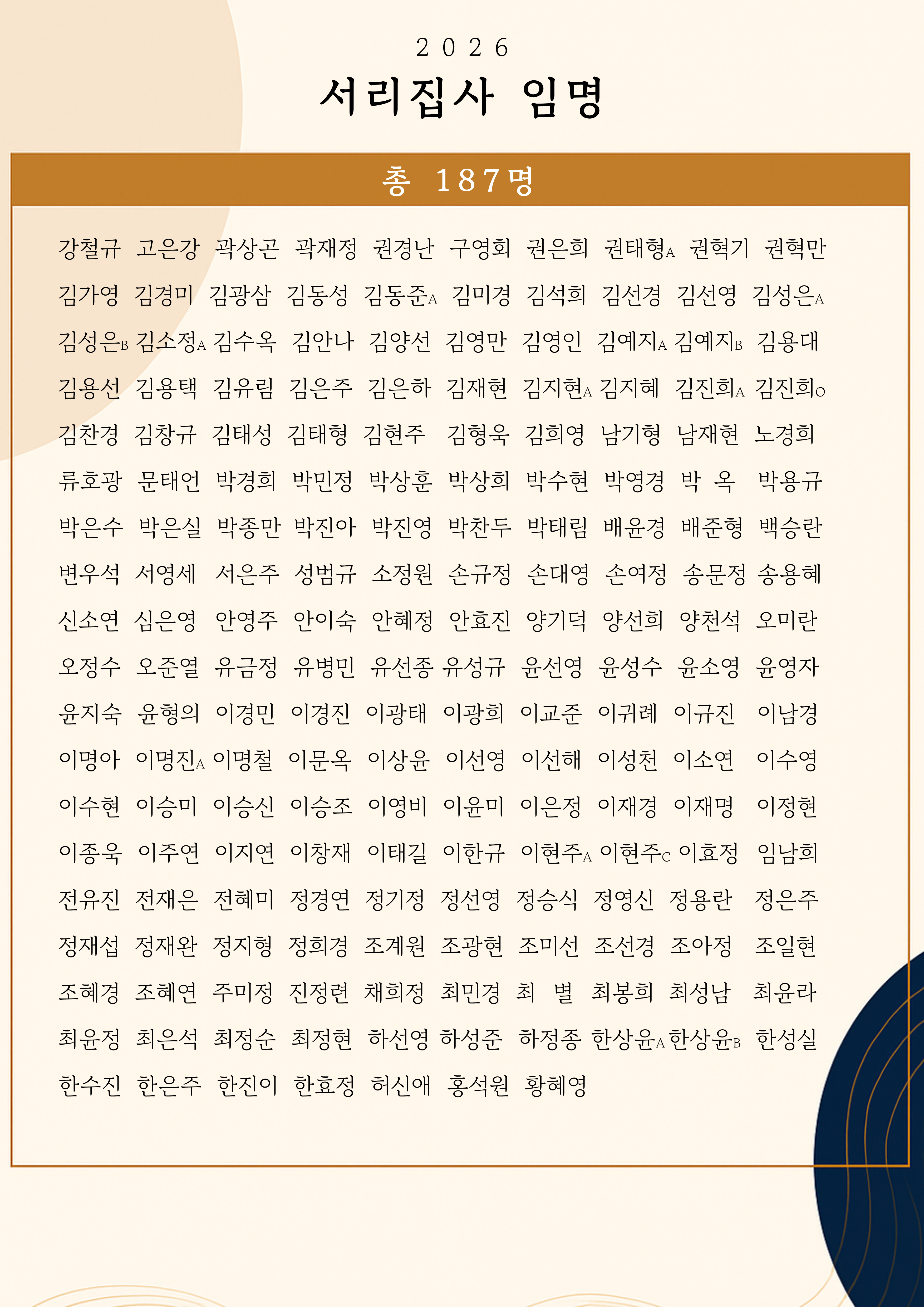 2026년 사귐의교회 서리집사 명단