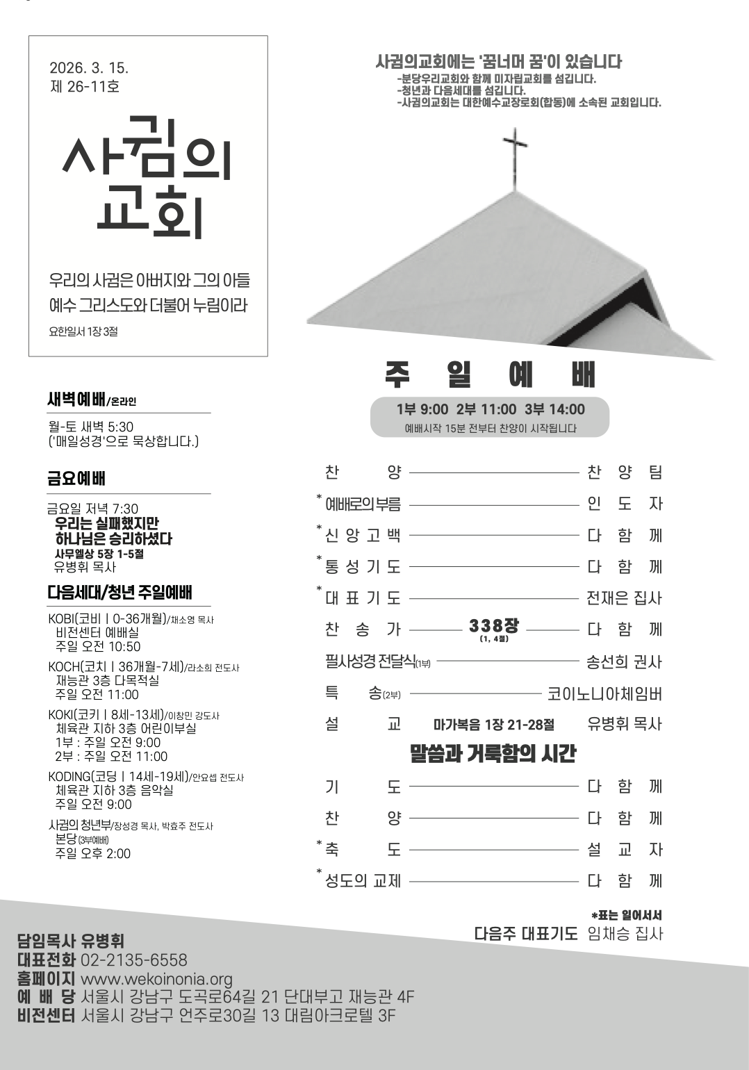 예배시간 안내
